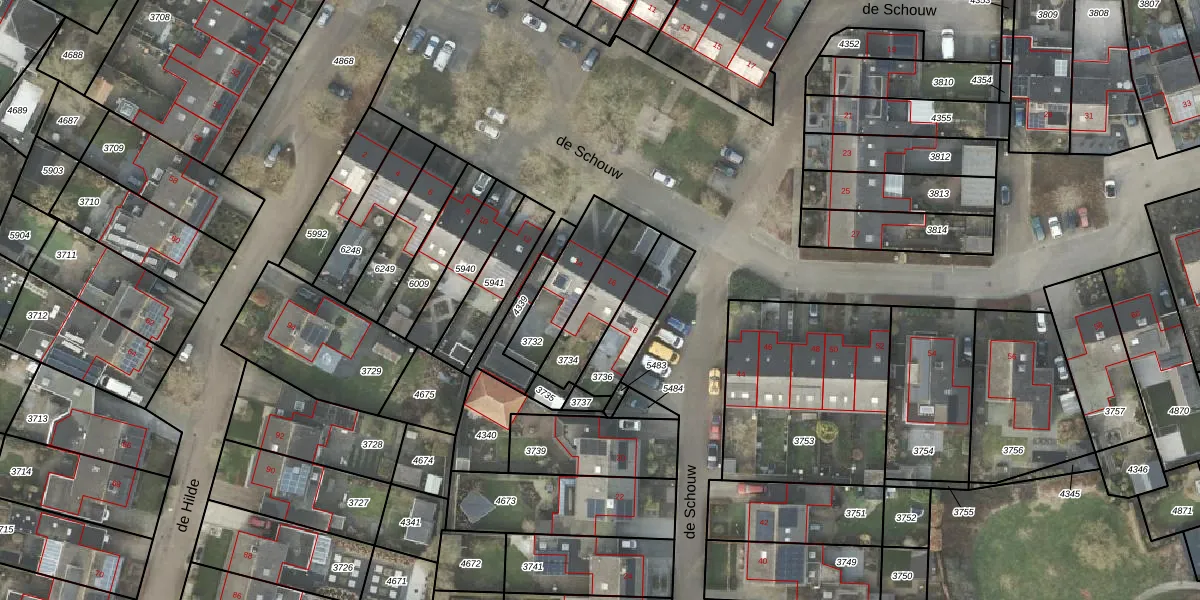 de Schouw 16 is gelegen op kadastraal perceel RTE00F3734. Deze kadastrale aanduiding is uniek en wordt gebruikt door het Kadaster om eigendomsrechten en andere zakelijke rechten vast te leggen. Het perceel maakt onderdeel uit van de kadastrale gemeente Raalte.