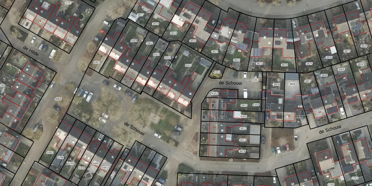 Het perceel waarop de Schouw 17 staat heeft een oppervlakte van 659 m². Dit is een groot perceel. De perceeloppervlakte wordt geregistreerd door het Kadaster. Gedetailleerde informatie over de maten van dit perceel kunt u vinden in het rapport Kadastrale kaart met maatvoering van de Schouw 17.