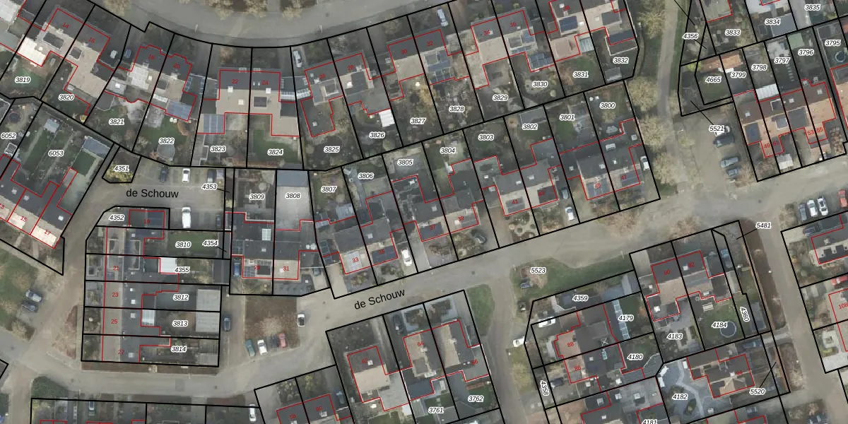 Gebruik de zoekbalk of klik op een perceel voor informatie over de adressen binnen dit perceel.