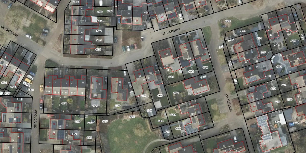 Het perceel waarop de Schouw 60 staat heeft een oppervlakte van 350 m². Dit is een groot perceel. De perceeloppervlakte wordt geregistreerd door het Kadaster. Gedetailleerde informatie over de maten van dit perceel kunt u vinden in het rapport Kadastrale kaart met maatvoering van de Schouw 60.