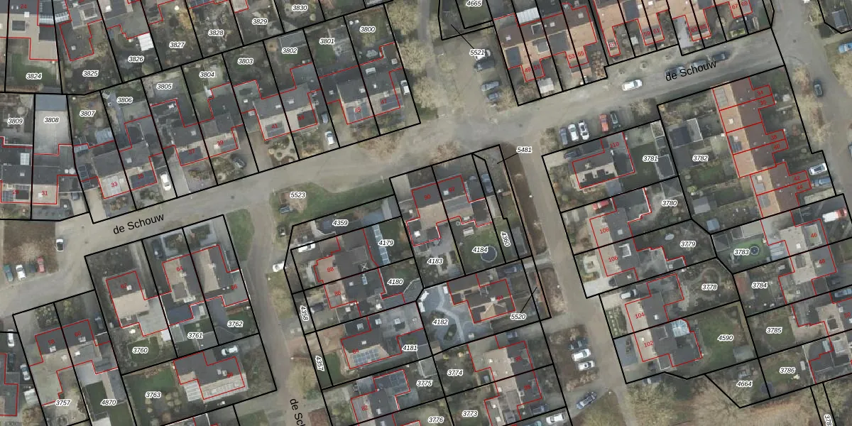 Het perceel waarop de Schouw 90 staat heeft een oppervlakte van 273 m². Dit is een middelgroot perceel. De perceeloppervlakte wordt geregistreerd door het Kadaster. Gedetailleerde informatie over de maten van dit perceel kunt u vinden in het rapport Kadastrale kaart met maatvoering van de Schouw 90.