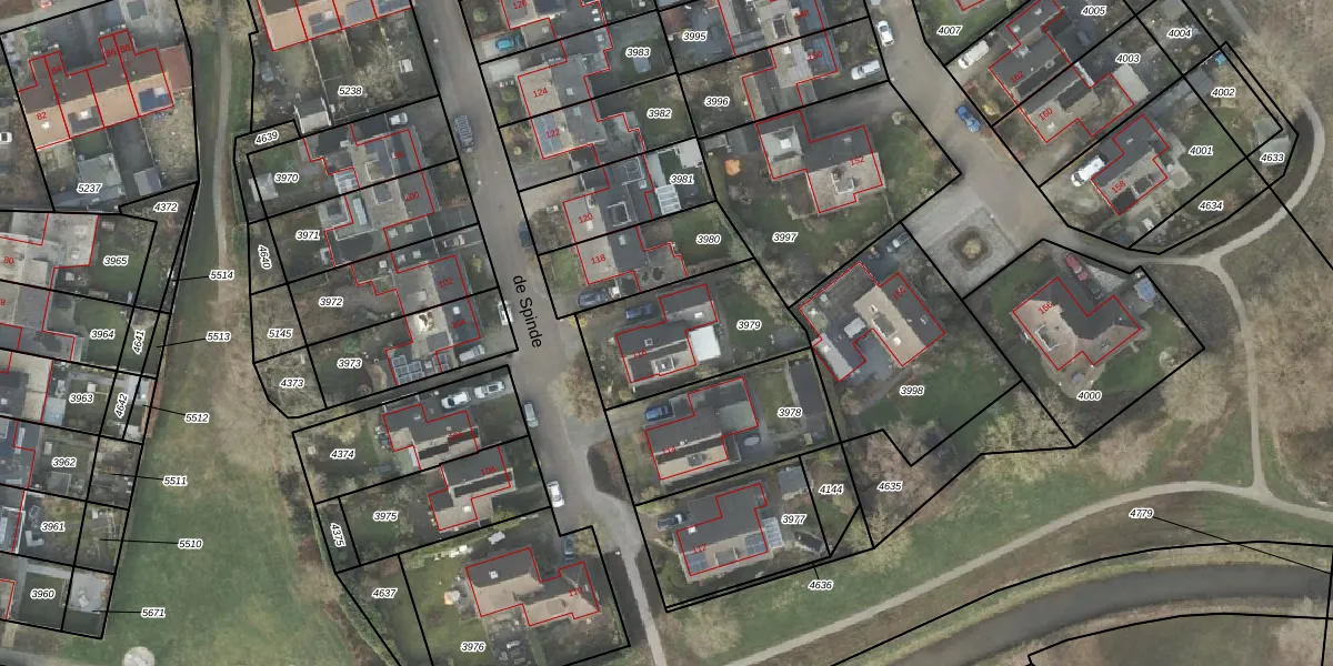 Het perceel waarop de Spinde 116 staat heeft een oppervlakte van 464 m². Dit is een groot perceel. De perceeloppervlakte wordt geregistreerd door het Kadaster. Gedetailleerde informatie over de maten van dit perceel kunt u vinden in het rapport Kadastrale kaart met maatvoering van de Spinde 116.