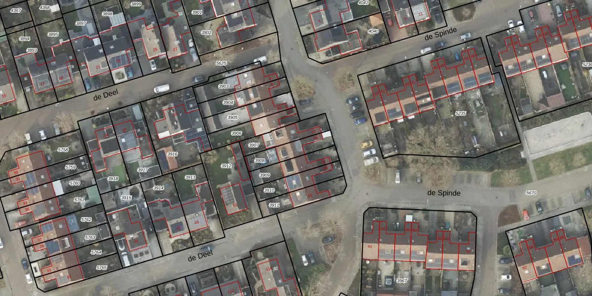 Het perceel waarop de Spinde 16 staat heeft een oppervlakte van 163 m². Dit is een middelgroot perceel. De perceeloppervlakte wordt geregistreerd door het Kadaster. Gedetailleerde informatie over de maten van dit perceel kunt u vinden in het rapport Kadastrale kaart met maatvoering van de Spinde 16.