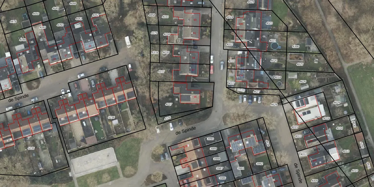 Het perceel waarop de Spinde 55 staat heeft een oppervlakte van 452 m². Dit is een groot perceel. De perceeloppervlakte wordt geregistreerd door het Kadaster. Gedetailleerde informatie over de maten van dit perceel kunt u vinden in het rapport Kadastrale kaart met maatvoering van de Spinde 55.