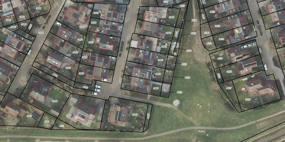 Het perceel waarop de Spinde 72 staat heeft een oppervlakte van 279 m². Dit is een middelgroot perceel. De perceeloppervlakte wordt geregistreerd door het Kadaster. Gedetailleerde informatie over de maten van dit perceel kunt u vinden in het rapport Kadastrale kaart met maatvoering van de Spinde 72.