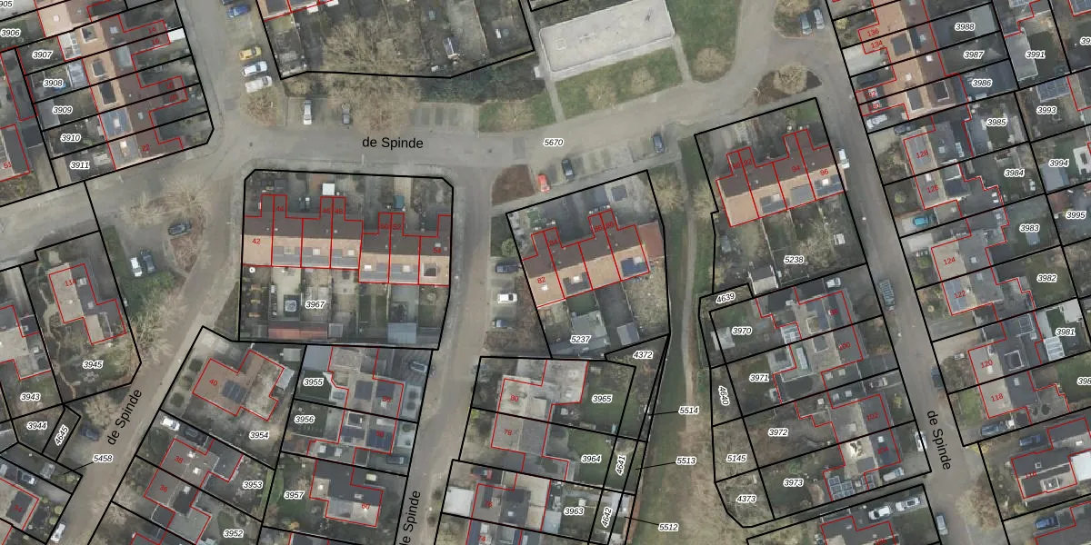 Het perceel waarop de Spinde 82 staat heeft een oppervlakte van 755 m². Dit is een groot perceel. De perceeloppervlakte wordt geregistreerd door het Kadaster. Gedetailleerde informatie over de maten van dit perceel kunt u vinden in het rapport Kadastrale kaart met maatvoering van de Spinde 82.