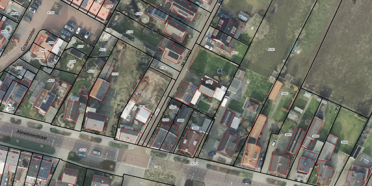 Gebruik de zoekbalk of klik op een perceel voor informatie over de adressen binnen dit perceel.