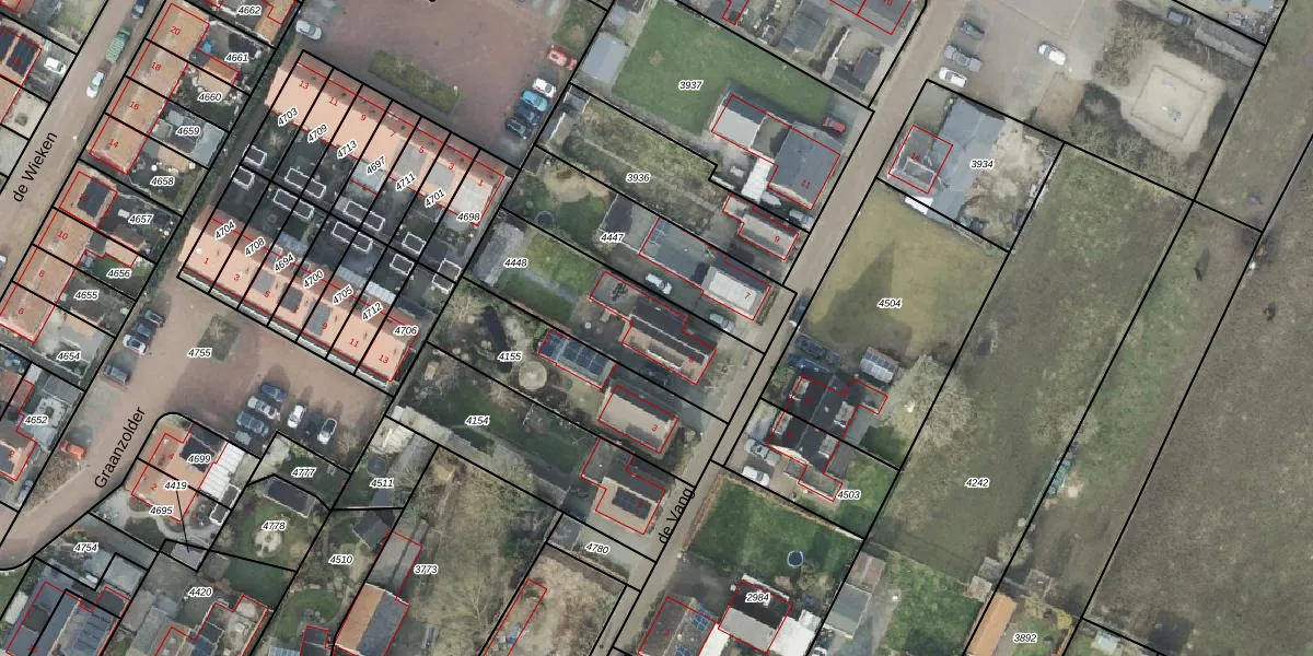 Het perceel waarop de Vang 5 staat heeft een oppervlakte van 561 m². Dit is een groot perceel. De perceeloppervlakte wordt geregistreerd door het Kadaster. Gedetailleerde informatie over de maten van dit perceel kunt u vinden in het rapport Kadastrale kaart met maatvoering van de Vang 5.
