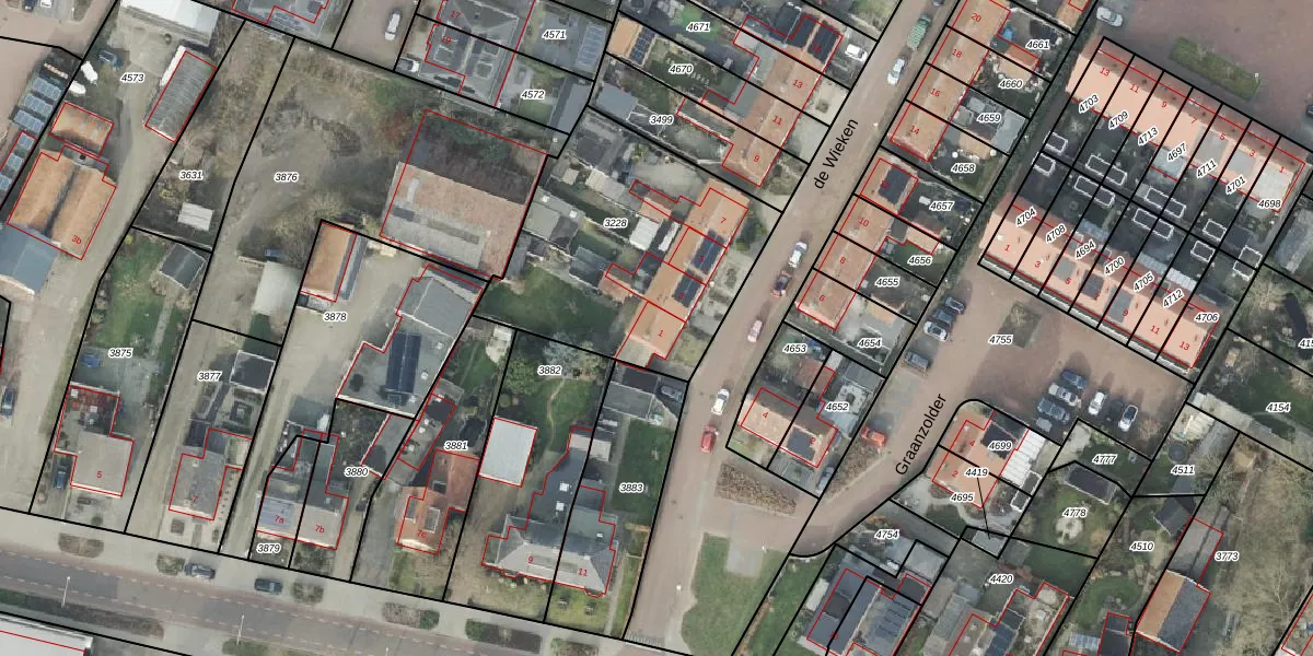 Het perceel waarop de Wieken 1 staat heeft een oppervlakte van 1125 m². Dit is een zeer groot perceel. De perceeloppervlakte wordt geregistreerd door het Kadaster. Gedetailleerde informatie over de maten van dit perceel kunt u vinden in het rapport Kadastrale kaart met maatvoering van de Wieken 1.