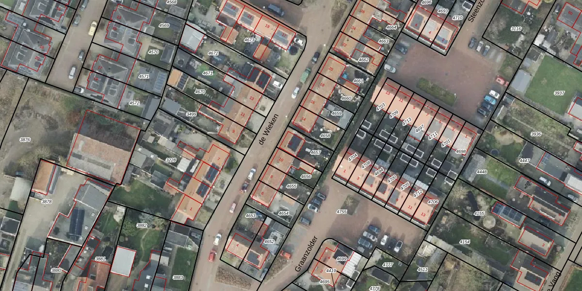 de Wieken 12 is gelegen op kadastraal perceel RTE00E4657. Deze kadastrale aanduiding is uniek en wordt gebruikt door het Kadaster om eigendomsrechten en andere zakelijke rechten vast te leggen. Het perceel maakt onderdeel uit van de kadastrale gemeente Raalte.