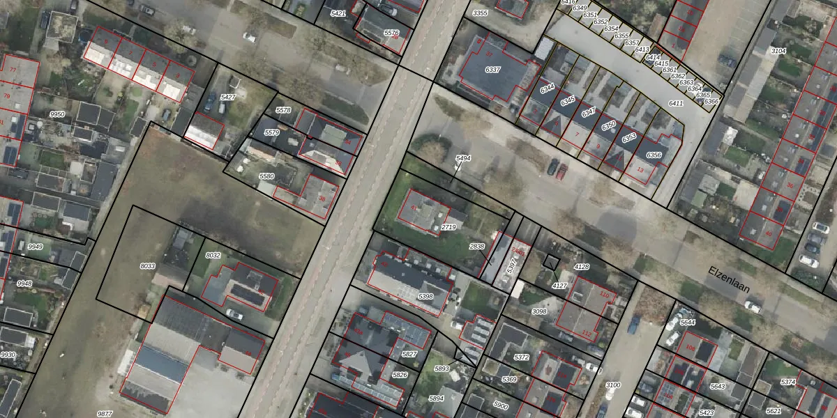 Gebruik de zoekbalk of klik op een perceel voor informatie over de adressen binnen dit perceel.