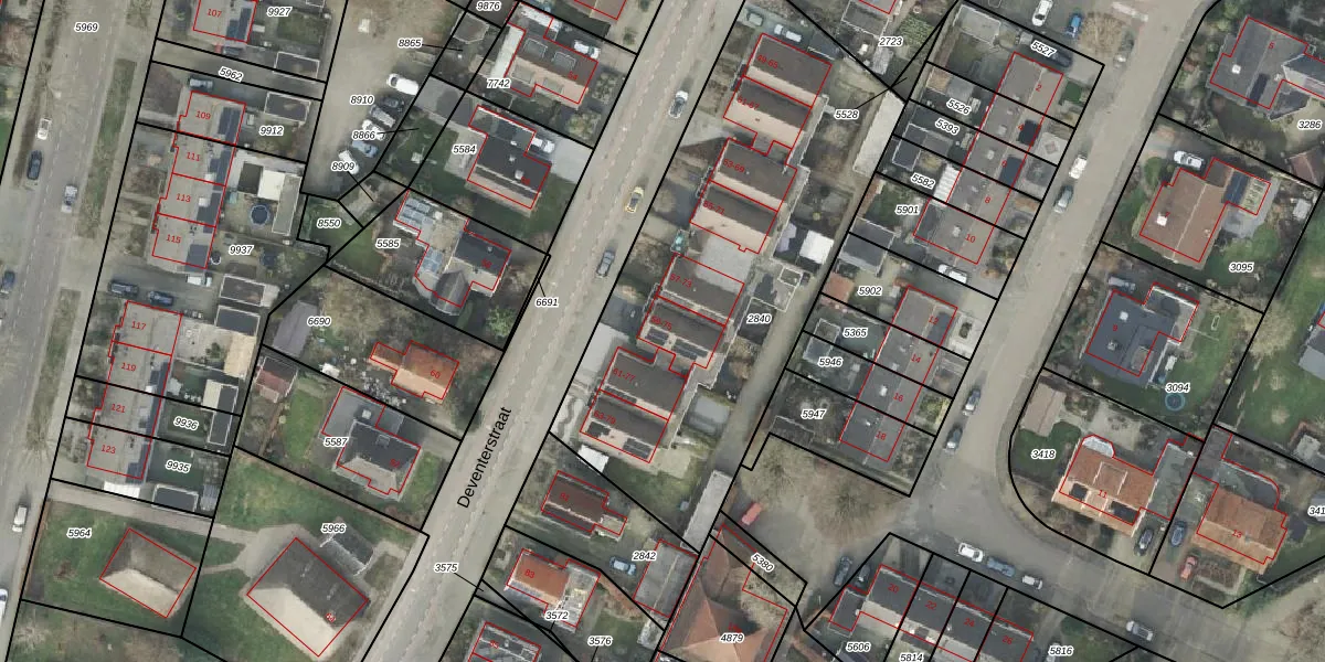 Het perceel waarop Deventerstraat 59 staat heeft een oppervlakte van 2160 m². Dit is een zeer groot perceel. De perceeloppervlakte wordt geregistreerd door het Kadaster. Gedetailleerde informatie over de maten van dit perceel kunt u vinden in het rapport Kadastrale kaart met maatvoering van Deventerstraat 59.