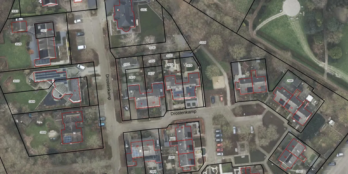 Het perceel waarop Drostenkamp 11 staat heeft een oppervlakte van 317 m². Dit is een groot perceel. De perceeloppervlakte wordt geregistreerd door het Kadaster. Gedetailleerde informatie over de maten van dit perceel kunt u vinden in het rapport Kadastrale kaart met maatvoering van Drostenkamp 11.