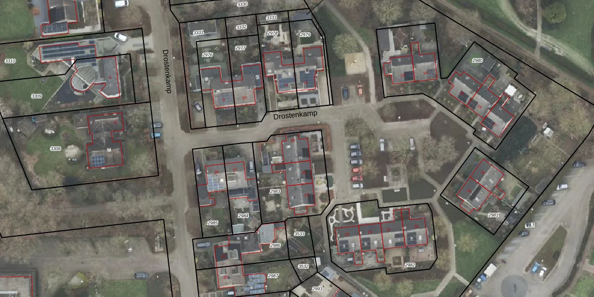 Het perceel waarop Drostenkamp 26 staat heeft een oppervlakte van 663 m². Dit is een groot perceel. De perceeloppervlakte wordt geregistreerd door het Kadaster. Gedetailleerde informatie over de maten van dit perceel kunt u vinden in het rapport Kadastrale kaart met maatvoering van Drostenkamp 26.
