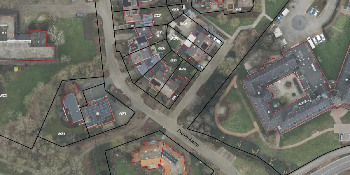 Het perceel waarop Drostenkamp 34 staat heeft een oppervlakte van 294 m². Dit is een middelgroot perceel. De perceeloppervlakte wordt geregistreerd door het Kadaster. Gedetailleerde informatie over de maten van dit perceel kunt u vinden in het rapport Kadastrale kaart met maatvoering van Drostenkamp 34.