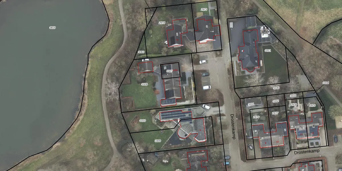 Drostenkamp 6 is gelegen op kadastraal perceel RTE00M3328. Deze kadastrale aanduiding is uniek en wordt gebruikt door het Kadaster om eigendomsrechten en andere zakelijke rechten vast te leggen. Het perceel maakt onderdeel uit van de kadastrale gemeente Raalte.