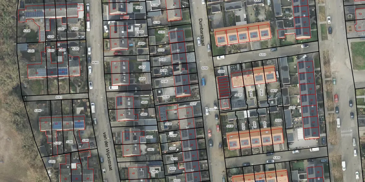Gebruik de zoekbalk of klik op een perceel voor informatie over de adressen binnen dit perceel.