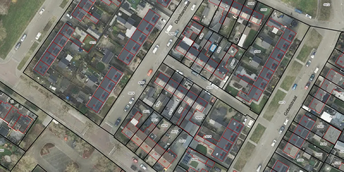 Het perceel waarop Dumbarstraat 71 staat heeft een oppervlakte van 164 m². Dit is een middelgroot perceel. De perceeloppervlakte wordt geregistreerd door het Kadaster. Gedetailleerde informatie over de maten van dit perceel kunt u vinden in het rapport Kadastrale kaart met maatvoering van Dumbarstraat 71.