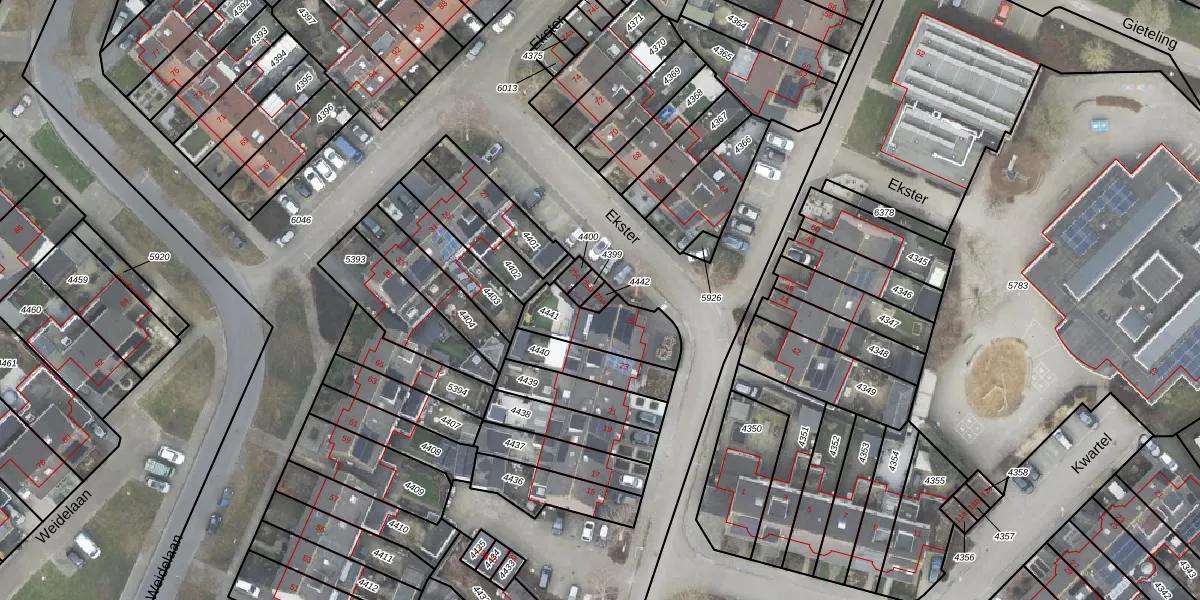 Het perceel waarop Ekster 25-a staat heeft een oppervlakte van 15 m². Dit is een klein perceel. De perceeloppervlakte wordt geregistreerd door het Kadaster. Gedetailleerde informatie over de maten van dit perceel kunt u vinden in het rapport Kadastrale kaart met maatvoering van Ekster 25-a.