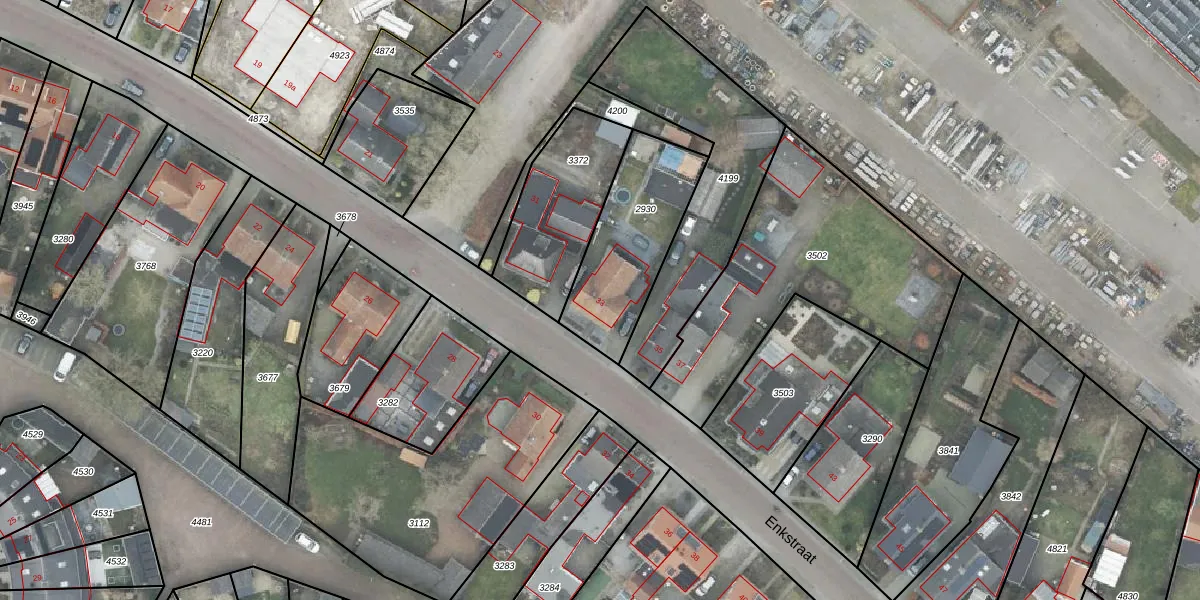 Het perceel waarop Enkstraat 33 staat heeft een oppervlakte van 465 m². Dit is een groot perceel. De perceeloppervlakte wordt geregistreerd door het Kadaster. Gedetailleerde informatie over de maten van dit perceel kunt u vinden in het rapport Kadastrale kaart met maatvoering van Enkstraat 33.
