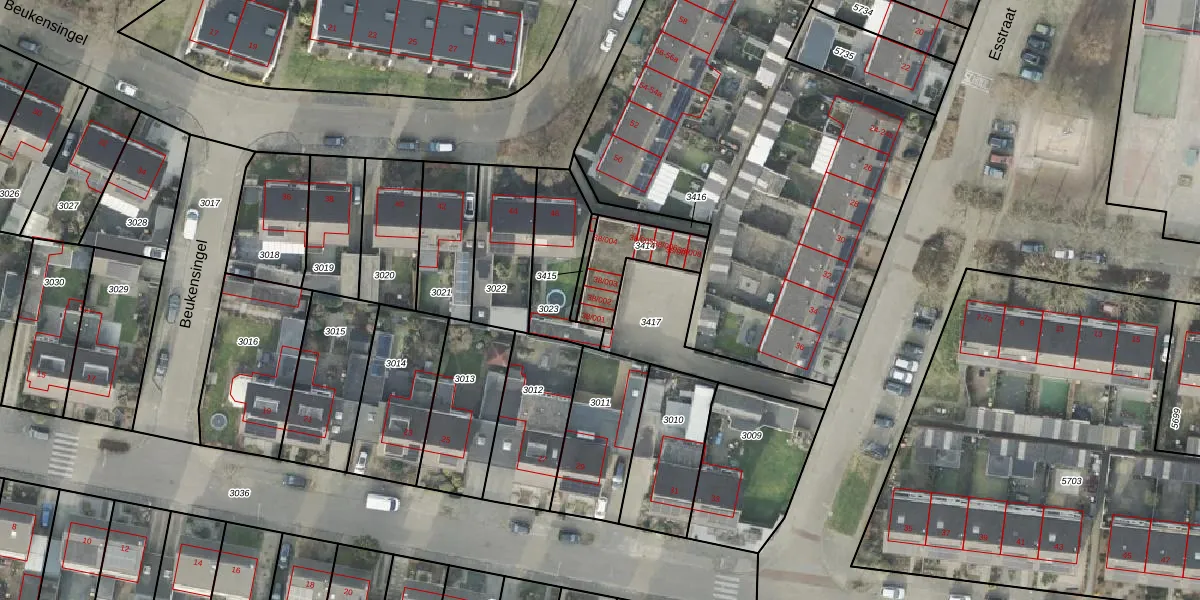 Het perceel waarop Esstraat 38-002 staat heeft een oppervlakte van 185 m². Dit is een middelgroot perceel. De perceeloppervlakte wordt geregistreerd door het Kadaster. Gedetailleerde informatie over de maten van dit perceel kunt u vinden in het rapport Kadastrale kaart met maatvoering van Esstraat 38-002.