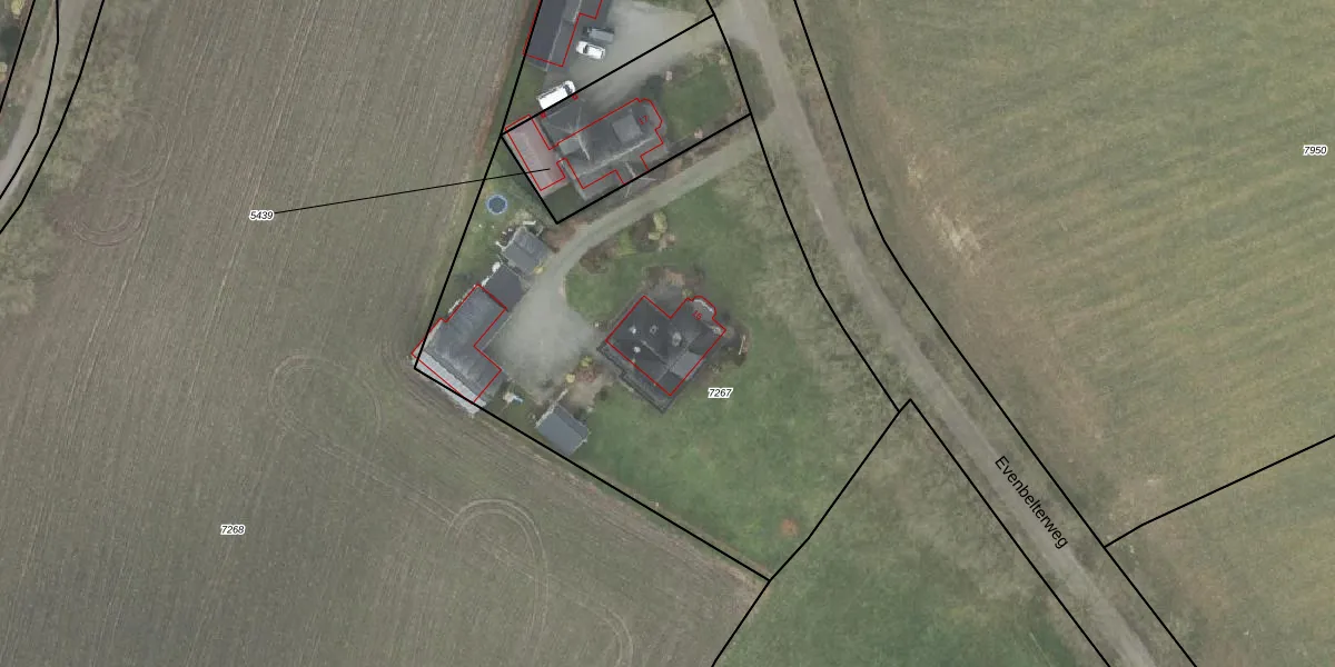 Het perceel waarop Evenbelterweg 15 staat heeft een oppervlakte van 2860 m². Dit is een zeer groot perceel. De perceeloppervlakte wordt geregistreerd door het Kadaster. Gedetailleerde informatie over de maten van dit perceel kunt u vinden in het rapport Kadastrale kaart met maatvoering van Evenbelterweg 15.