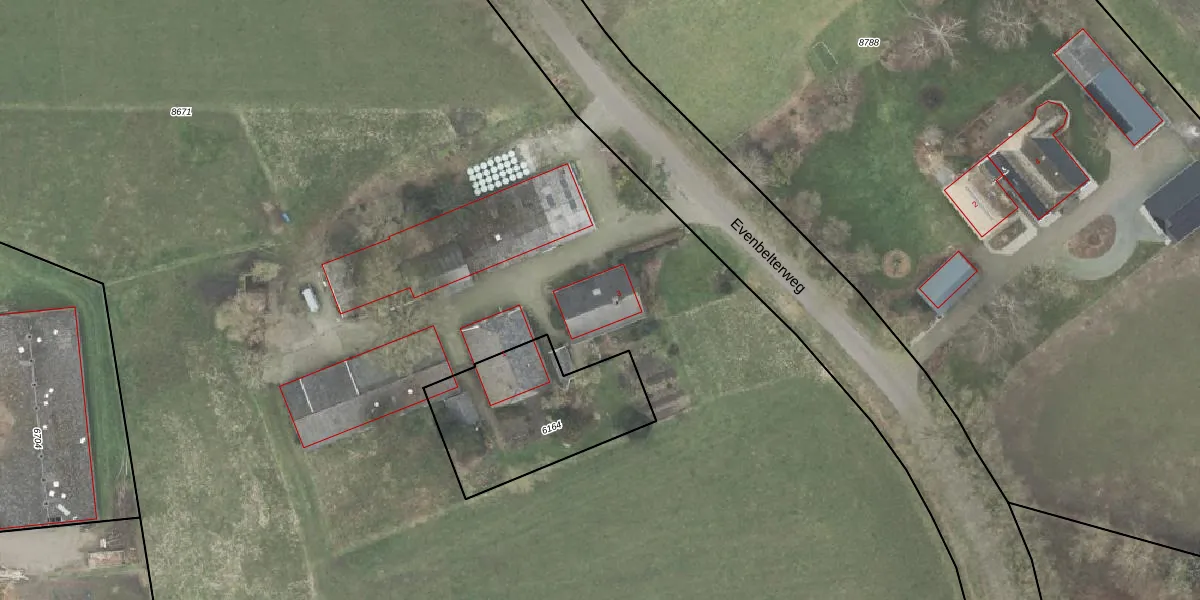 Het perceel waarop Evenbelterweg 3 staat heeft een oppervlakte van 2,2 ha. Dit is een zeer groot perceel. De perceeloppervlakte wordt geregistreerd door het Kadaster. Gedetailleerde informatie over de maten van dit perceel kunt u vinden in het rapport Kadastrale kaart met maatvoering van Evenbelterweg 3.