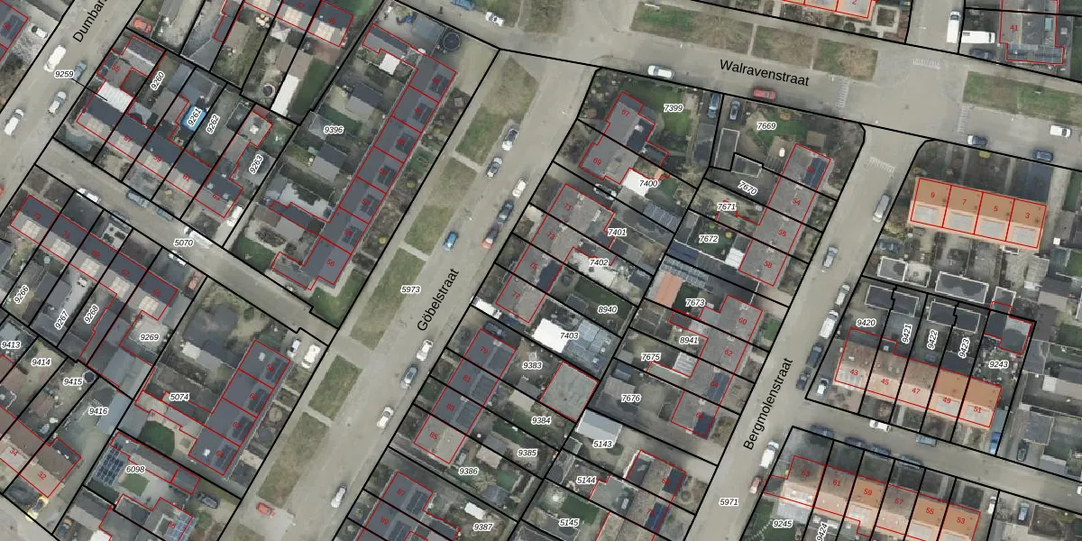 Het perceel waarop Göbelstraat 75 staat heeft een oppervlakte van 174 m². Dit is een middelgroot perceel. De perceeloppervlakte wordt geregistreerd door het Kadaster. Gedetailleerde informatie over de maten van dit perceel kunt u vinden in het rapport Kadastrale kaart met maatvoering van Göbelstraat 75.