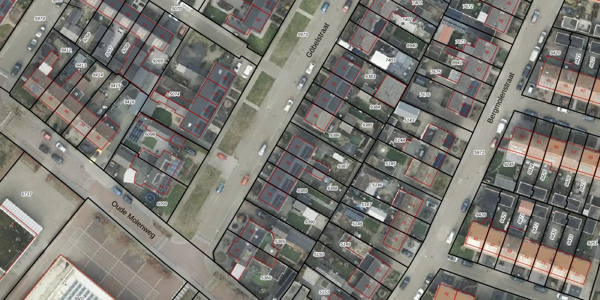 Het perceel waarop Göbelstraat 87 staat heeft een oppervlakte van 255 m². Dit is een middelgroot perceel. De perceeloppervlakte wordt geregistreerd door het Kadaster. Gedetailleerde informatie over de maten van dit perceel kunt u vinden in het rapport Kadastrale kaart met maatvoering van Göbelstraat 87.