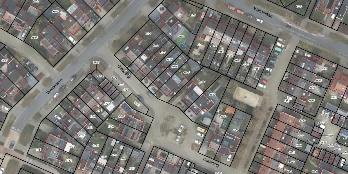 Het perceel waarop Gieteling 11 staat heeft een oppervlakte van 269 m². Dit is een middelgroot perceel. De perceeloppervlakte wordt geregistreerd door het Kadaster. Gedetailleerde informatie over de maten van dit perceel kunt u vinden in het rapport Kadastrale kaart met maatvoering van Gieteling 11.