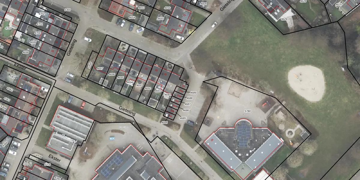 Het perceel waarop Gieteling 34-a staat heeft een oppervlakte van 18 m². Dit is een klein perceel. De perceeloppervlakte wordt geregistreerd door het Kadaster. Gedetailleerde informatie over de maten van dit perceel kunt u vinden in het rapport Kadastrale kaart met maatvoering van Gieteling 34-a.