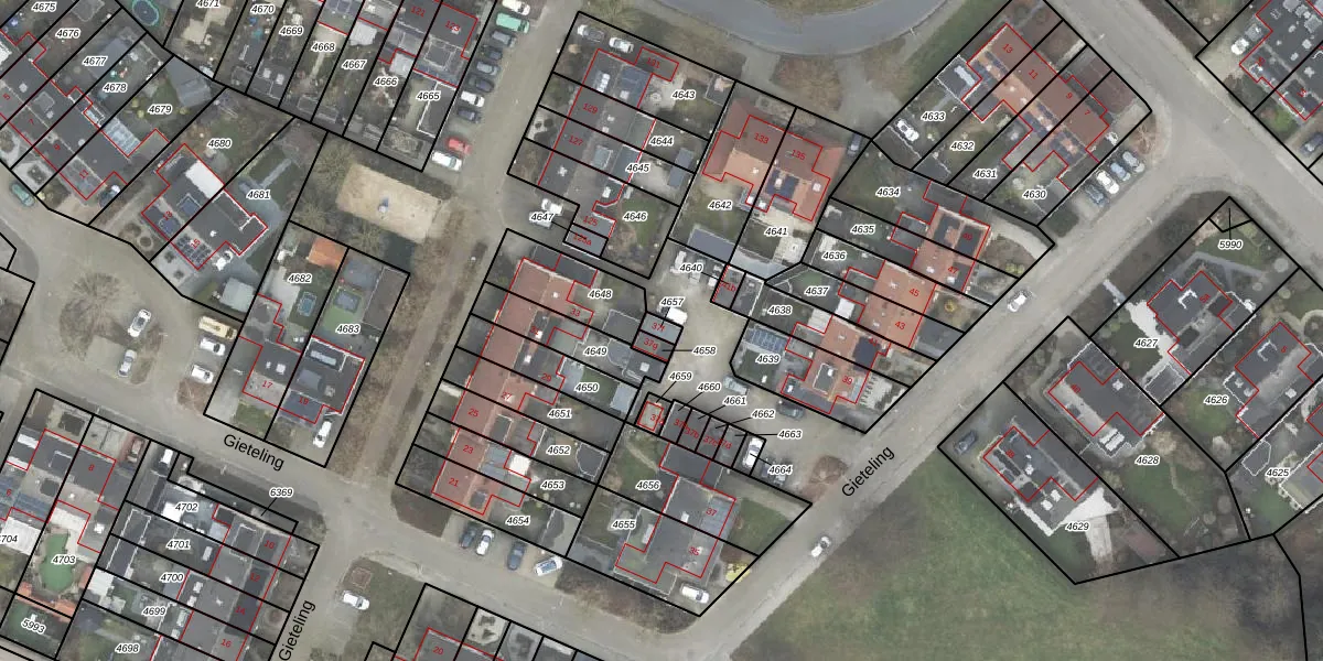 Het perceel waarop Gieteling 37-f staat heeft een oppervlakte van 18 m². Dit is een klein perceel. De perceeloppervlakte wordt geregistreerd door het Kadaster. Gedetailleerde informatie over de maten van dit perceel kunt u vinden in het rapport Kadastrale kaart met maatvoering van Gieteling 37-f.