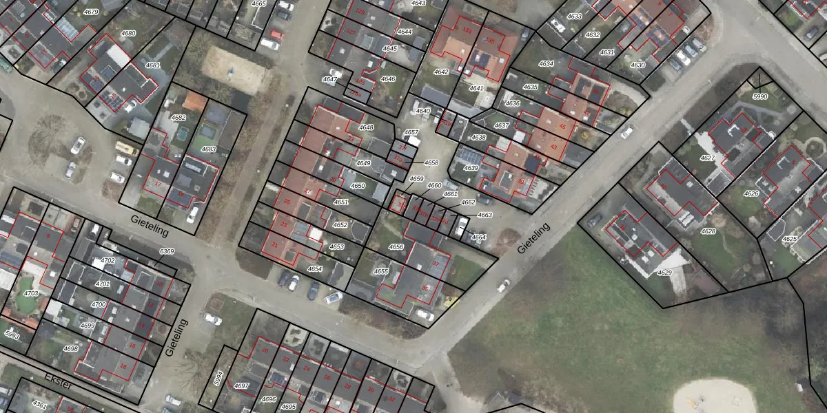 Het perceel waarop Gieteling 37-h staat heeft een oppervlakte van 18 m². Dit is een klein perceel. De perceeloppervlakte wordt geregistreerd door het Kadaster. Gedetailleerde informatie over de maten van dit perceel kunt u vinden in het rapport Kadastrale kaart met maatvoering van Gieteling 37-h.