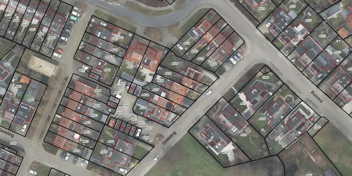 Het perceel waarop Gieteling 45 staat heeft een oppervlakte van 154 m². Dit is een middelgroot perceel. De perceeloppervlakte wordt geregistreerd door het Kadaster. Gedetailleerde informatie over de maten van dit perceel kunt u vinden in het rapport Kadastrale kaart met maatvoering van Gieteling 45.