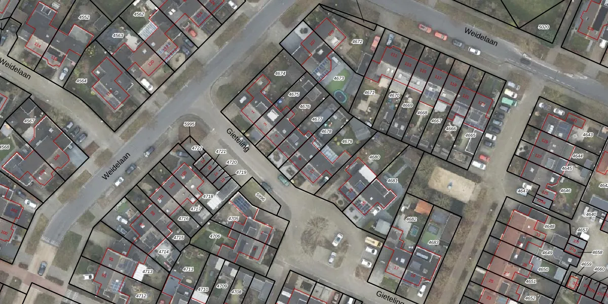 Het perceel waarop Gieteling 9 staat heeft een oppervlakte van 158 m². Dit is een middelgroot perceel. De perceeloppervlakte wordt geregistreerd door het Kadaster. Gedetailleerde informatie over de maten van dit perceel kunt u vinden in het rapport Kadastrale kaart met maatvoering van Gieteling 9.