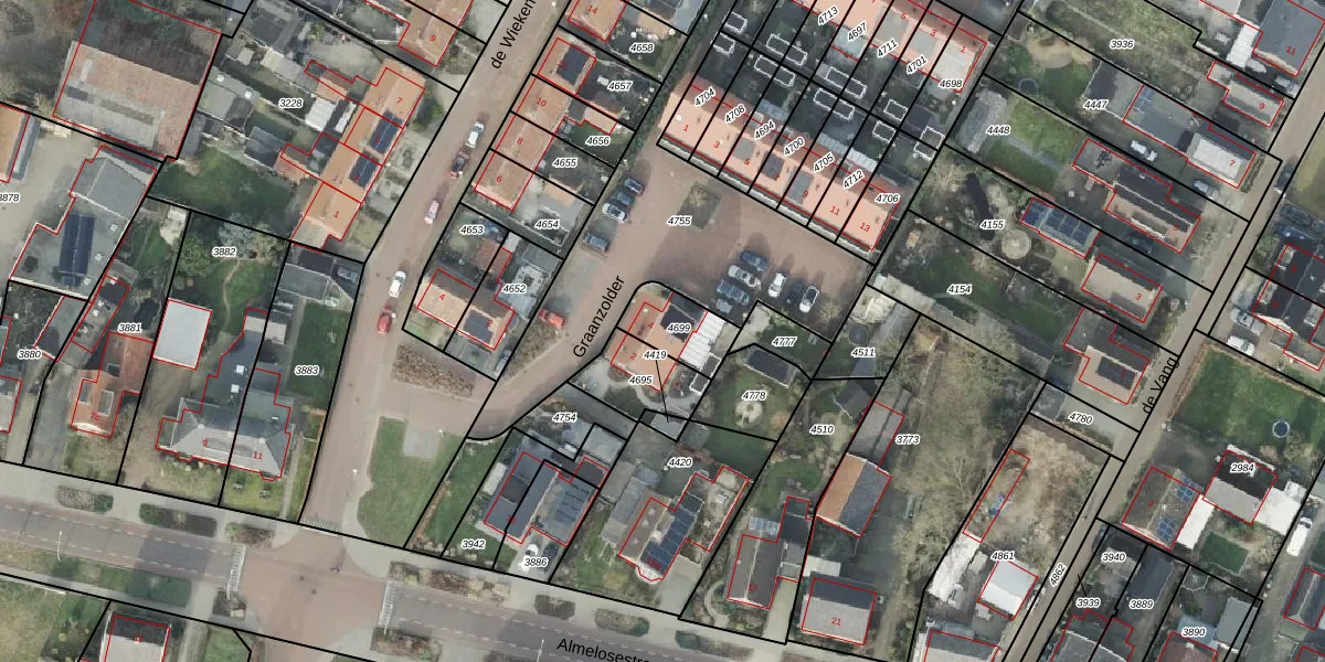 Gebruik de zoekbalk of klik op een perceel voor informatie over de adressen binnen dit perceel.