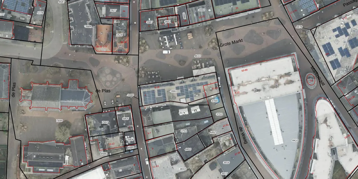 Grote Markt 6 is gelegen op kadastraal perceel RTE00E3991. Deze kadastrale aanduiding is uniek en wordt gebruikt door het Kadaster om eigendomsrechten en andere zakelijke rechten vast te leggen. Het perceel maakt onderdeel uit van de kadastrale gemeente Raalte.