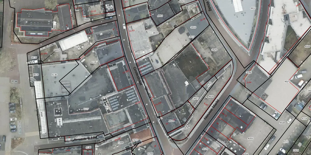 Het perceel waarop Grotestraat 17 staat heeft een oppervlakte van 1566 m². Dit is een zeer groot perceel. De perceeloppervlakte wordt geregistreerd door het Kadaster. Gedetailleerde informatie over de maten van dit perceel kunt u vinden in het rapport Kadastrale kaart met maatvoering van Grotestraat 17.