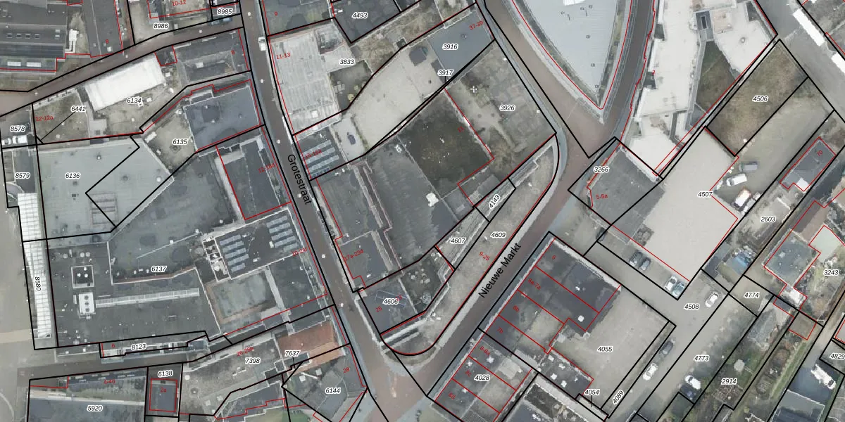 Het perceel waarop Grotestraat 21-d staat heeft een oppervlakte van 1566 m². Dit is een zeer groot perceel. De perceeloppervlakte wordt geregistreerd door het Kadaster. Gedetailleerde informatie over de maten van dit perceel kunt u vinden in het rapport Kadastrale kaart met maatvoering van Grotestraat 21-d.