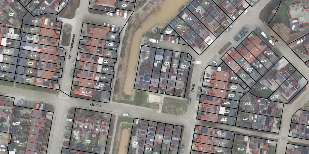 Het perceel waarop Grutto 93 staat heeft een oppervlakte van 154 m². Dit is een middelgroot perceel. De perceeloppervlakte wordt geregistreerd door het Kadaster. Gedetailleerde informatie over de maten van dit perceel kunt u vinden in het rapport Kadastrale kaart met maatvoering van Grutto 93.