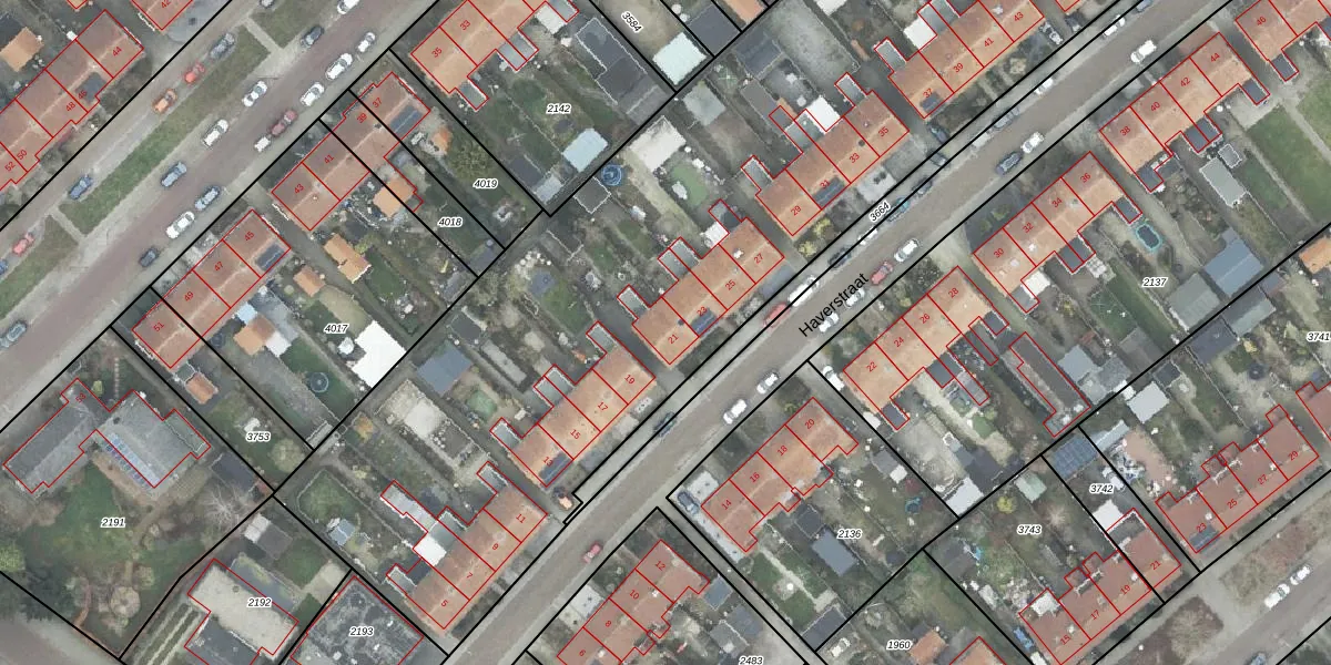 Het perceel waarop Haverstraat 21 staat heeft een oppervlakte van 6146 m². Dit is een zeer groot perceel. De perceeloppervlakte wordt geregistreerd door het Kadaster. Gedetailleerde informatie over de maten van dit perceel kunt u vinden in het rapport Kadastrale kaart met maatvoering van Haverstraat 21.