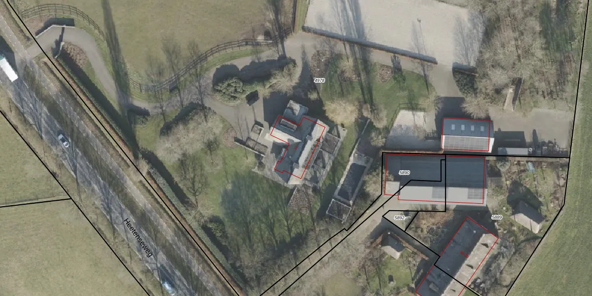 Het perceel waarop Heetenseweg 3 staat heeft een oppervlakte van 1,7 ha. Dit is een zeer groot perceel. De perceeloppervlakte wordt geregistreerd door het Kadaster. Gedetailleerde informatie over de maten van dit perceel kunt u vinden in het rapport Kadastrale kaart met maatvoering van Heetenseweg 3.