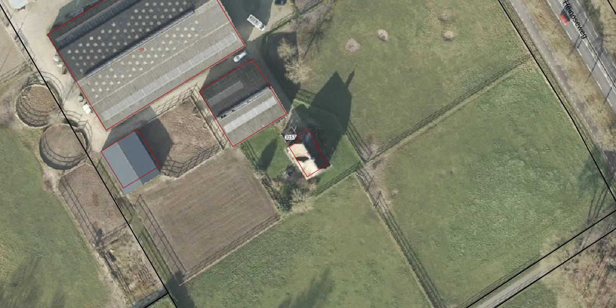 Het perceel waarop Heinoseweg 7 staat heeft een oppervlakte van 2,4 ha. Dit is een zeer groot perceel. De perceeloppervlakte wordt geregistreerd door het Kadaster. Gedetailleerde informatie over de maten van dit perceel kunt u vinden in het rapport Kadastrale kaart met maatvoering van Heinoseweg 7.