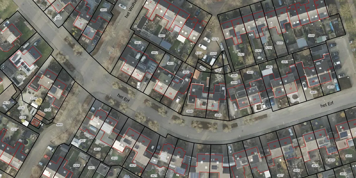 Het perceel waarop het Erf 15 staat heeft een oppervlakte van 295 m². Dit is een middelgroot perceel. De perceeloppervlakte wordt geregistreerd door het Kadaster. Gedetailleerde informatie over de maten van dit perceel kunt u vinden in het rapport Kadastrale kaart met maatvoering van het Erf 15.