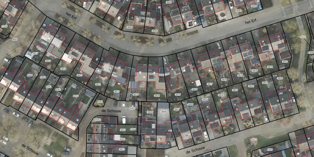 Het perceel waarop het Erf 24 staat heeft een oppervlakte van 325 m². Dit is een groot perceel. De perceeloppervlakte wordt geregistreerd door het Kadaster. Gedetailleerde informatie over de maten van dit perceel kunt u vinden in het rapport Kadastrale kaart met maatvoering van het Erf 24.
