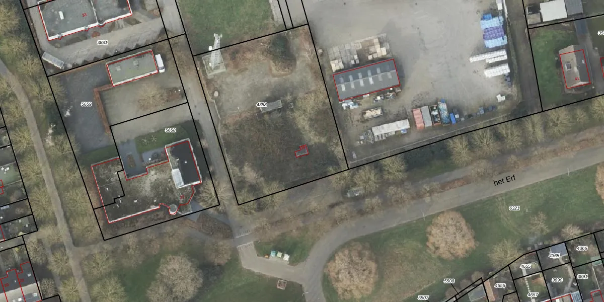 Het perceel waarop het Erf 39 staat heeft een oppervlakte van 1981 m². Dit is een zeer groot perceel. De perceeloppervlakte wordt geregistreerd door het Kadaster. Gedetailleerde informatie over de maten van dit perceel kunt u vinden in het rapport Kadastrale kaart met maatvoering van het Erf 39.