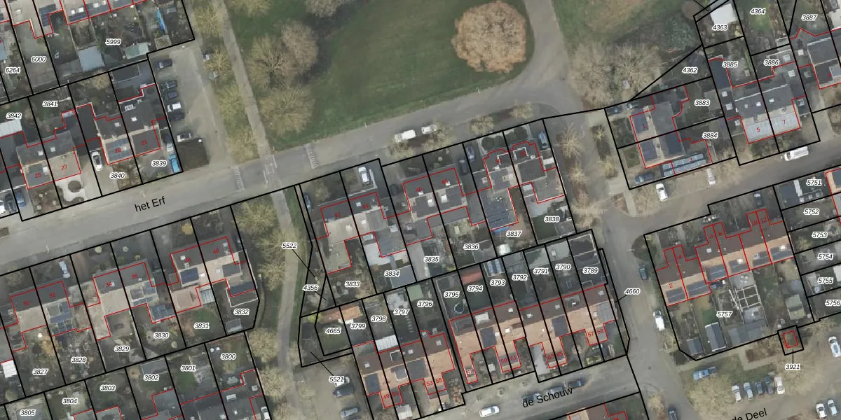 Het perceel waarop het Erf 46 staat heeft een oppervlakte van 285 m². Dit is een middelgroot perceel. De perceeloppervlakte wordt geregistreerd door het Kadaster. Gedetailleerde informatie over de maten van dit perceel kunt u vinden in het rapport Kadastrale kaart met maatvoering van het Erf 46.