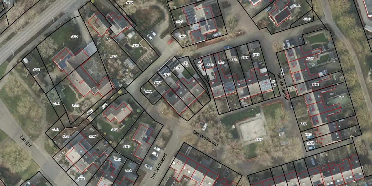 Het perceel waarop het Wolfseind 13 staat heeft een oppervlakte van 192 m². Dit is een middelgroot perceel. De perceeloppervlakte wordt geregistreerd door het Kadaster. Gedetailleerde informatie over de maten van dit perceel kunt u vinden in het rapport Kadastrale kaart met maatvoering van het Wolfseind 13.