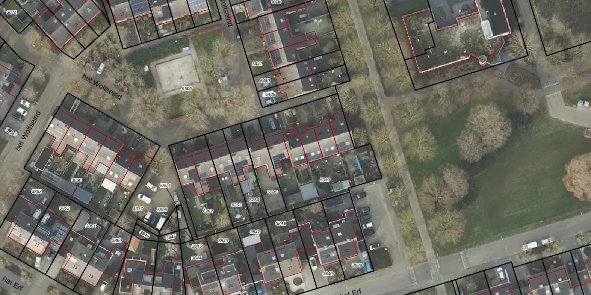 Het perceel waarop het Wolfseind 26 staat heeft een oppervlakte van 991 m². Dit is een groot perceel. De perceeloppervlakte wordt geregistreerd door het Kadaster. Gedetailleerde informatie over de maten van dit perceel kunt u vinden in het rapport Kadastrale kaart met maatvoering van het Wolfseind 26.