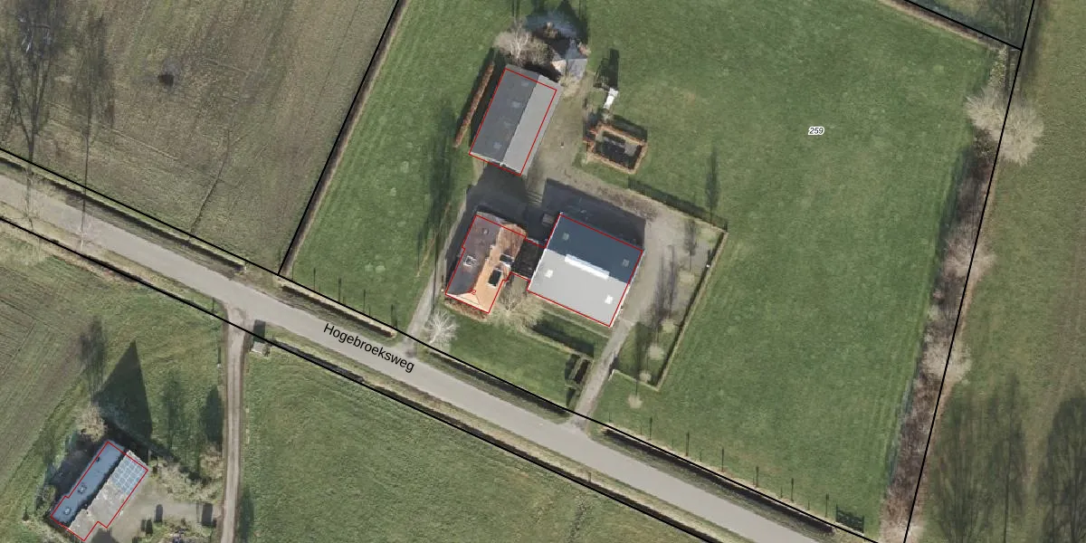 Het perceel waarop Hogebroeksweg 22 staat heeft een oppervlakte van 1,1 ha. Dit is een zeer groot perceel. De perceeloppervlakte wordt geregistreerd door het Kadaster. Gedetailleerde informatie over de maten van dit perceel kunt u vinden in het rapport Kadastrale kaart met maatvoering van Hogebroeksweg 22.